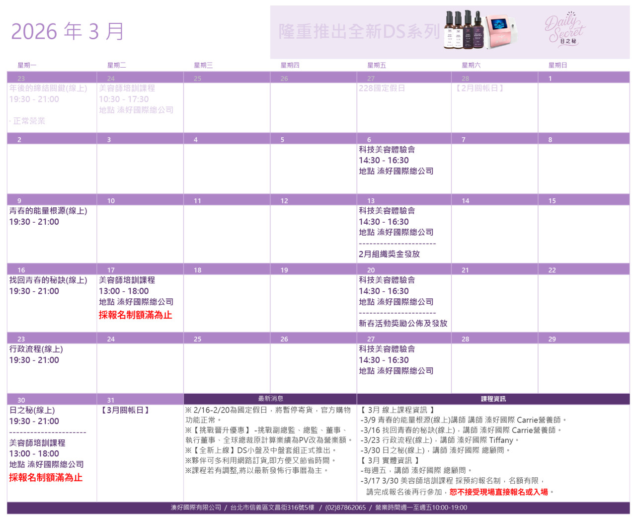2026年3月行事曆